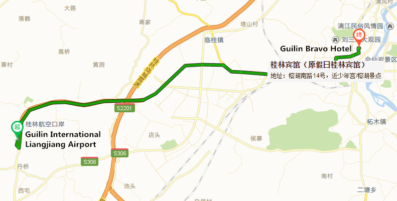 Directions: From Guilin International Liangjiang Airport (KWL), you may take a taxi to the Conference Hotel (Guilin Bravo Hotel). It should take about 50 minutes, and cost about CNY 120.